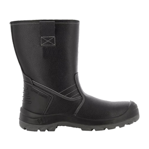 Cizmă de siguranță cu bombeu și lamelă antiperforație metalice. Talpă realizată din PU dublă densitate, cu bombeu masiv. Suprafață din piele rezistentă la apă