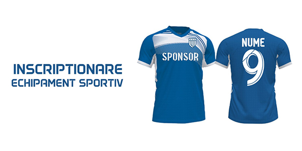 Echipamentele sportive se pot imprima cu numar, nume, logo sau sigla sponsorilor. Se poate personaliza orice tip echipament adus de către dumneavoastră sau achiționat din magazinul nostru. Sunt luate în considerare doar câmpurile completate. Prețul acestui serviciu poate varia în funcție de cantitatea echipamentelor dumneavoastră.