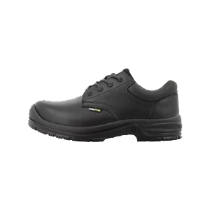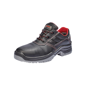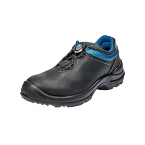 Încălțăminte de siguranță cu vârf din oțel, talpă anti-statică, antiderapantă și rezistentă la combustibil, absorbție de energie în călcâi și partea superioară din piele respirabilă.